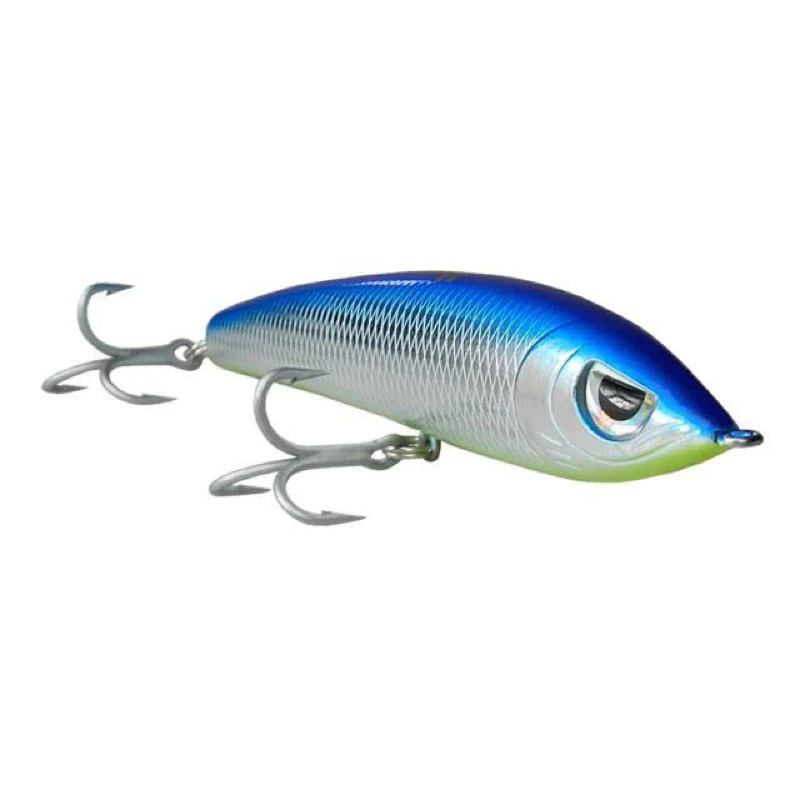 O grande diferencial da isca é o formato do seu corpo, fino e alongado, parecendo um peixe forrageiro. Outro detalhe importante são os pesos de balanceamento, que estão concentrados na traseira da isca, facilitando os longos arremessos.