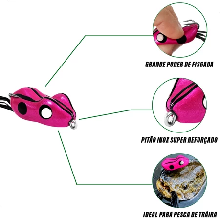 Fabricada com borracha de altíssima qualidade, possui sistema anti-enrosco com anzol reforçado e super afiado, o que garante um fácil trabalho por entre a vegetação aquática.